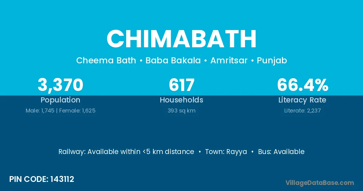 According to Census 2011 information, the village code of Chimabath village is 143112.