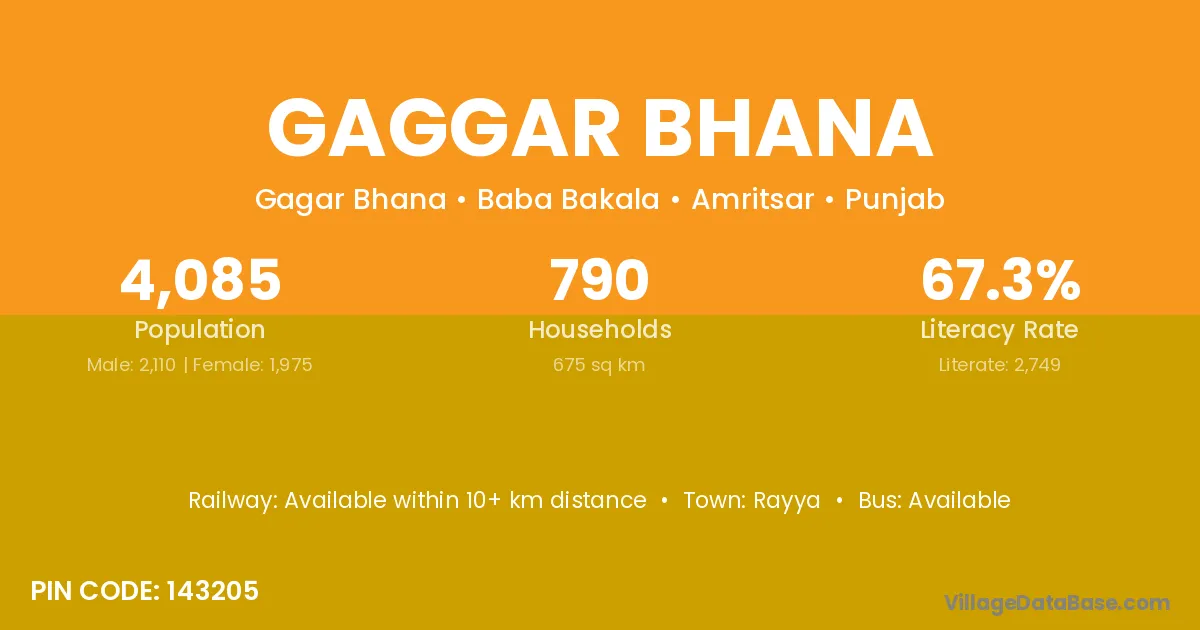 According to Census 2011 information, the village code of Gaggar Bhana village is 143205.