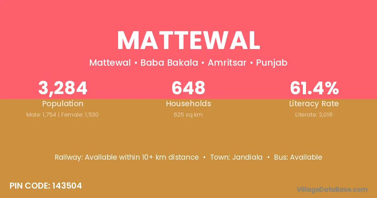 According to Census 2011 information, the village code of Mattewal village is 143504.