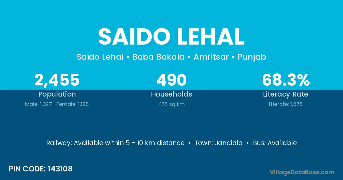 Jandiala is the nearest town to Saido Lehal village for major economic activities