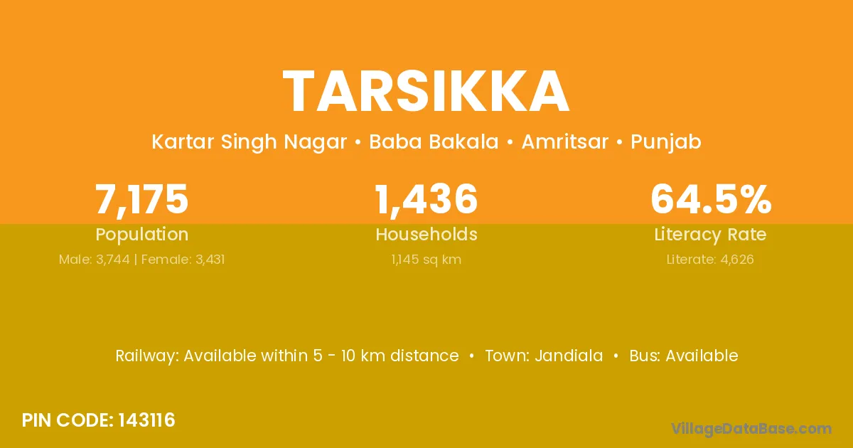 Jandiala is the nearest town to Tarsikka village for major economic activities