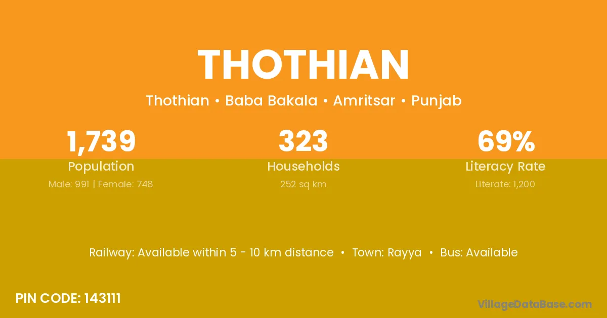 According to Census 2011 information, the village code of Thothian village is 143111.