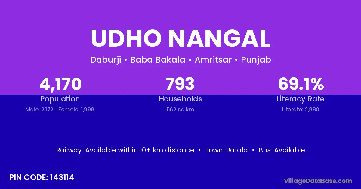 Batala is the nearest town to Udho Nangal village for major economic activities