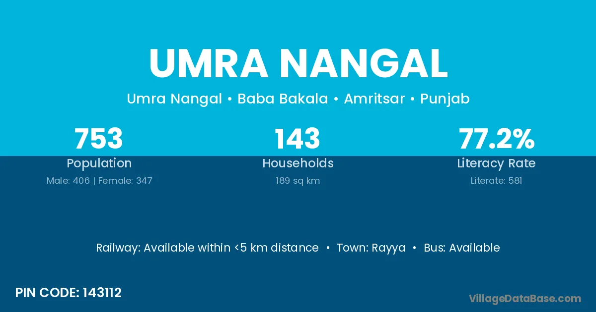 There are approximately 143 households in Umra Nangal village.