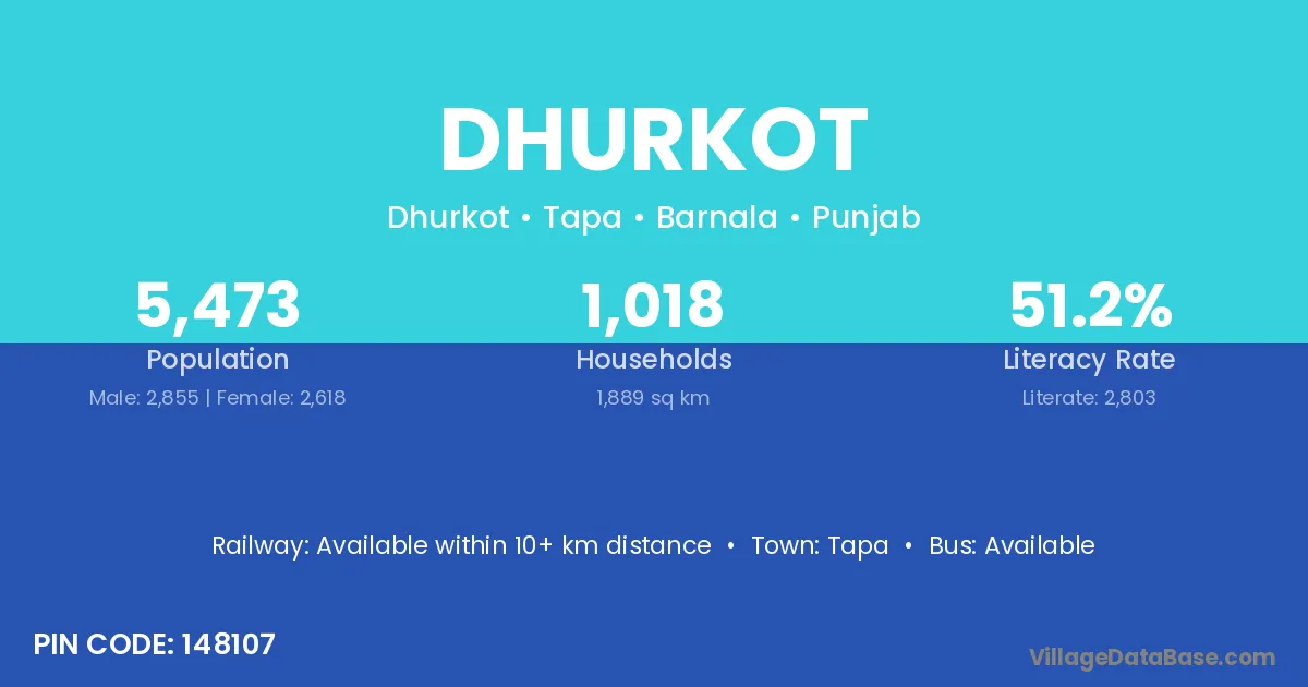 According to Census 2011 information, the village code of Dhurkot village is 148107.