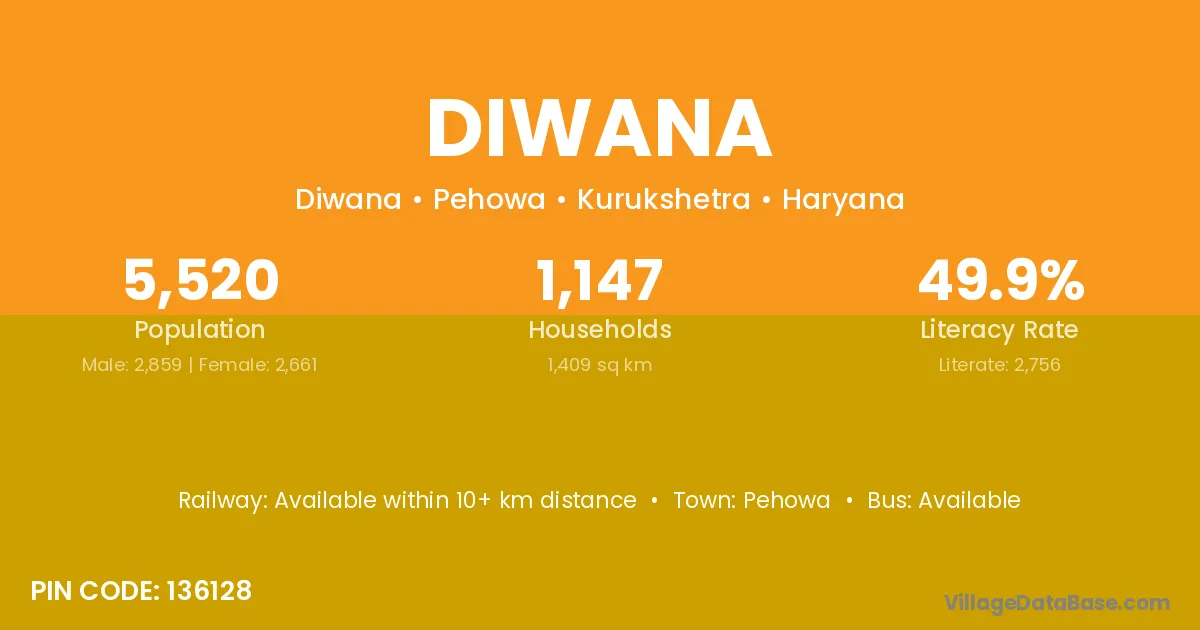 Diwana village has a total population of 2,890 people, of which 1,512 are males and 1,378 are females.