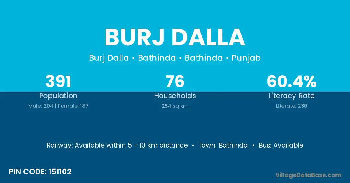 Bathinda is the nearest town to Burj Dalla village for major economic activities