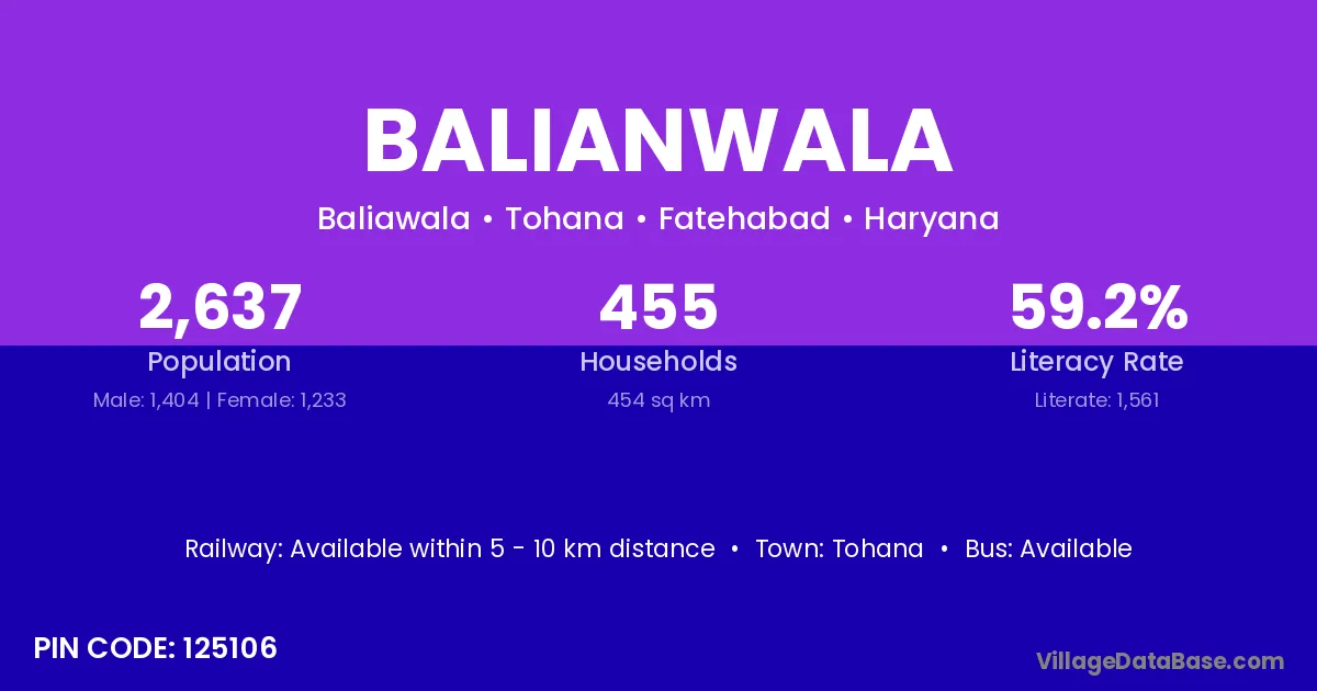 Balianwala village has a total population of 8,194 people, of which 4,395 are males and 3,799 are females.