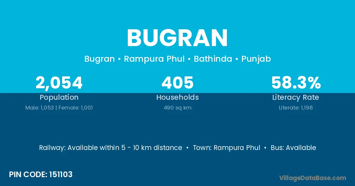 Rampura Phul is the nearest town to Bugran village for major economic activities