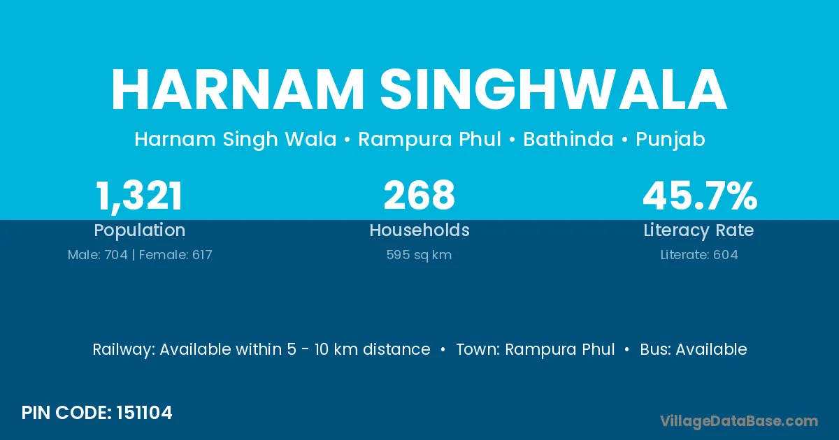 Rampura Phul is the nearest town to Harnam Singhwala village for major economic activities