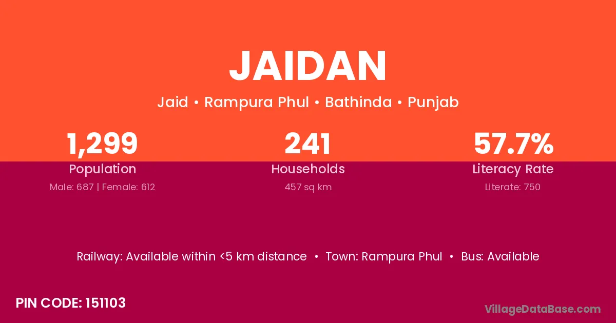 Rampura Phul is the nearest town to Jaidan village for major economic activities