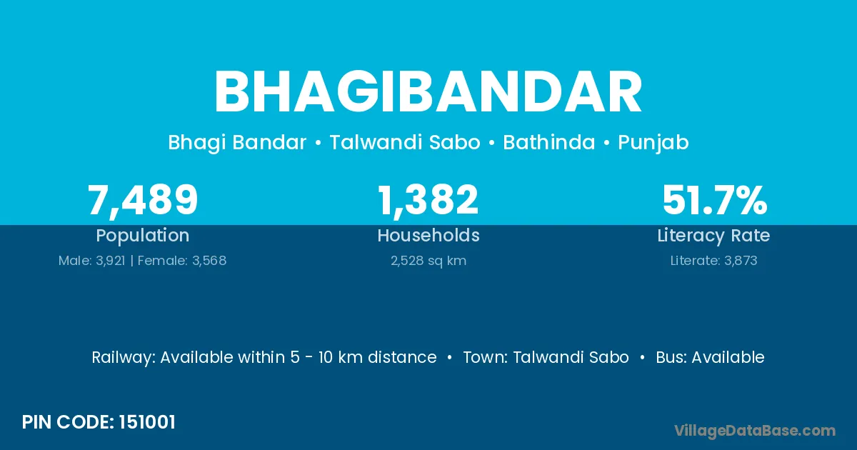 Talwandi Sabo is the nearest town to Bhagibandar village for major economic activities