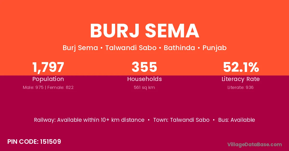 Talwandi Sabo is the nearest town to Burj Sema village for major economic activities