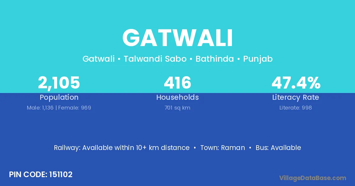 According to Census 2011 information, the village code of Gatwali village is 151102.