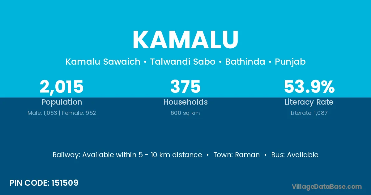 Kamalu village is located in the Talwandi Sabo Tehsil of the Bathinda district in Punjab .