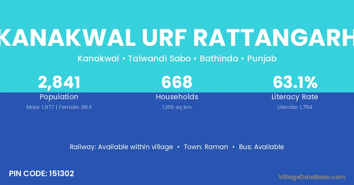 There are approximately 668 households in Kanakwal Urf Rattangarh village.