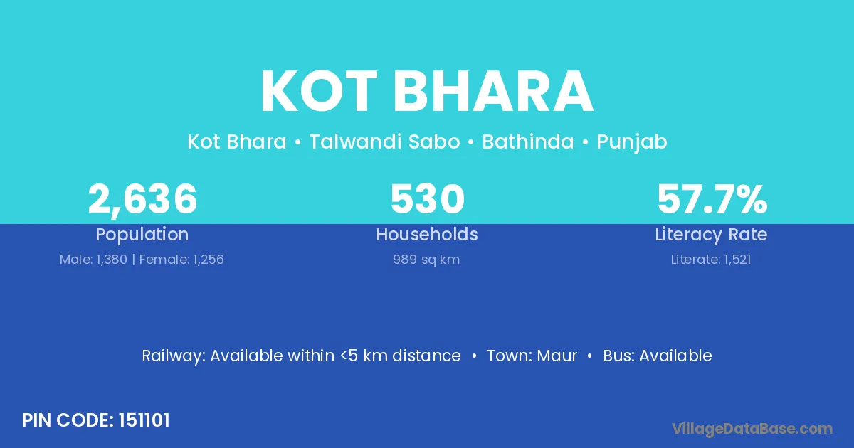 Maur is the nearest town to Kot Bhara village for major economic activities