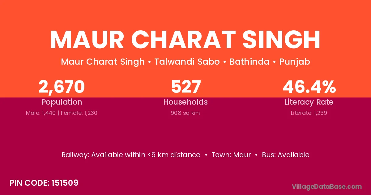 Maur is the nearest town to Maur Charat Singh village for major economic activities
