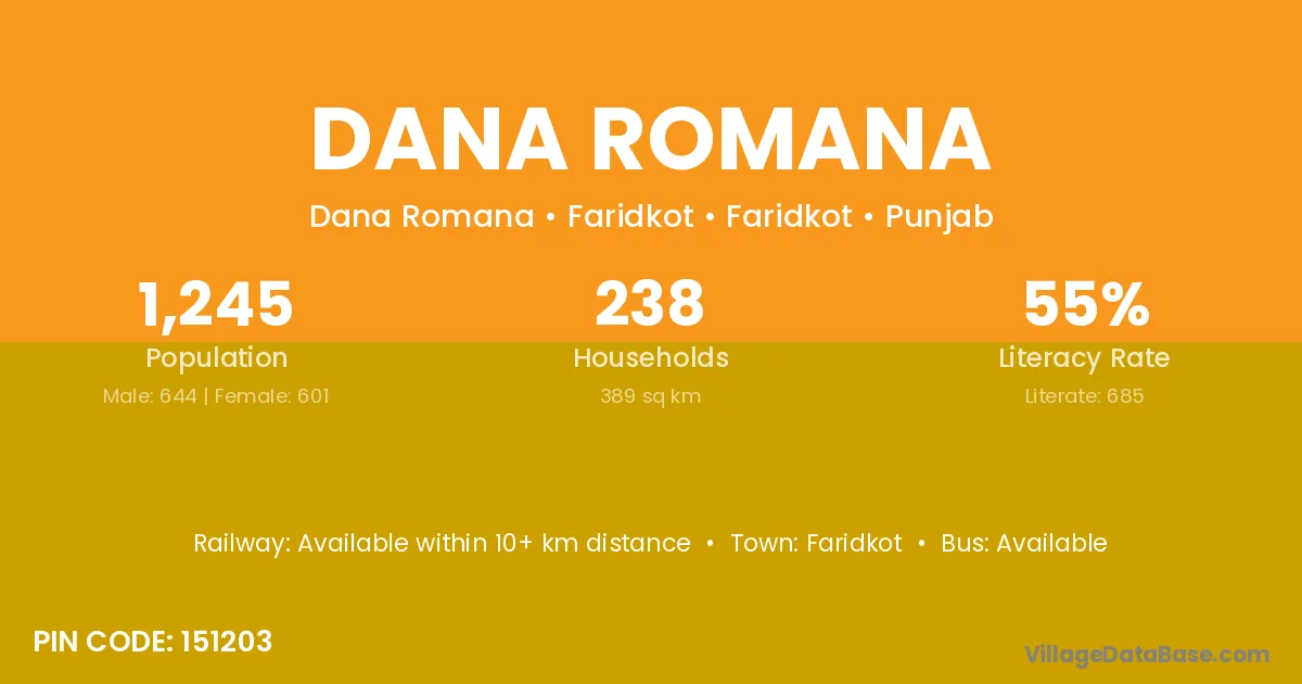Faridkot is the nearest town to Dana Romana village for major economic activities
