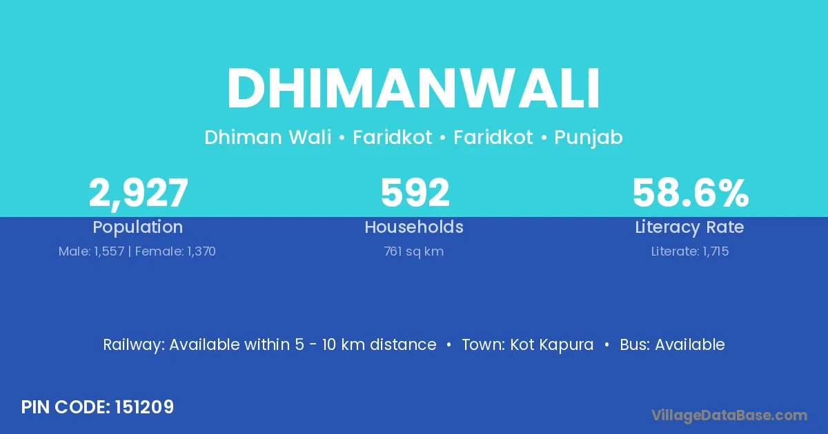 Kot Kapura is the nearest town to Dhimanwali village for major economic activities