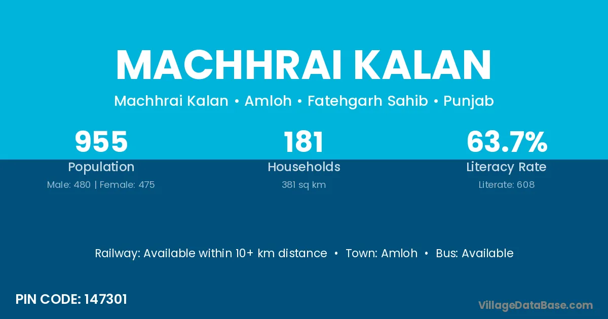 Amloh is the nearest town to Machhrai Kalan village for major economic activities