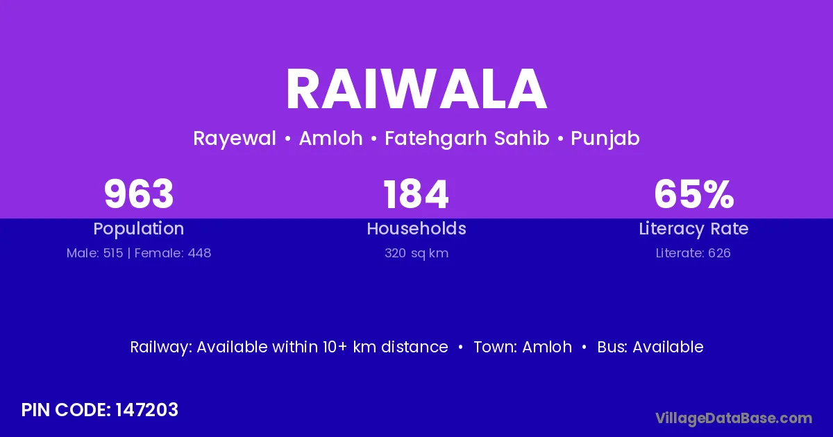 Amloh is the nearest town to Raiwala village for major economic activities