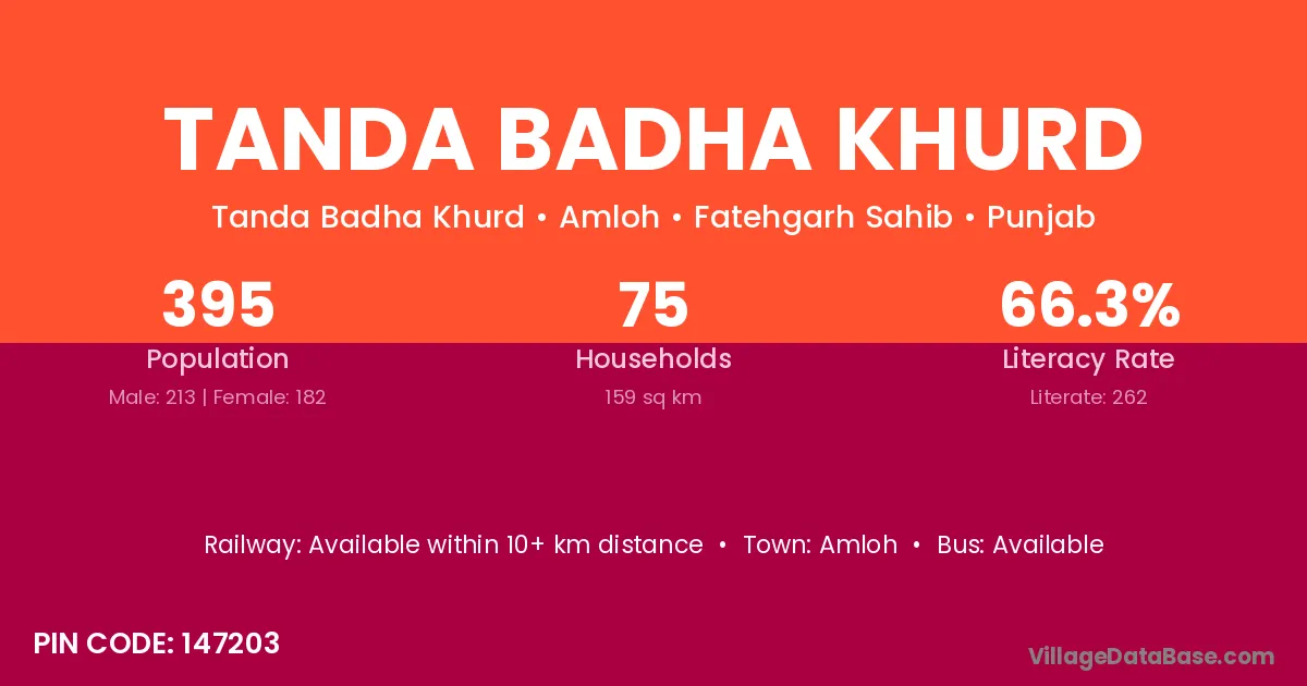 Amloh is the nearest town to Tanda Badha Khurd village for major economic activities