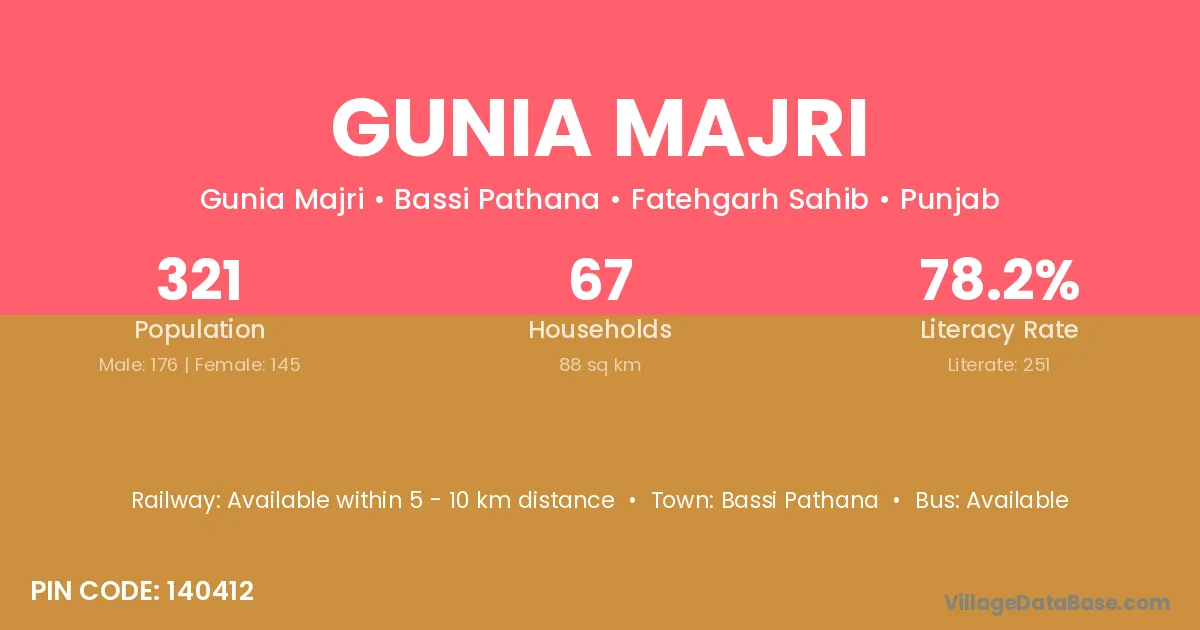 Bassi Pathana is the nearest town to Gunia Majri village for major economic activities
