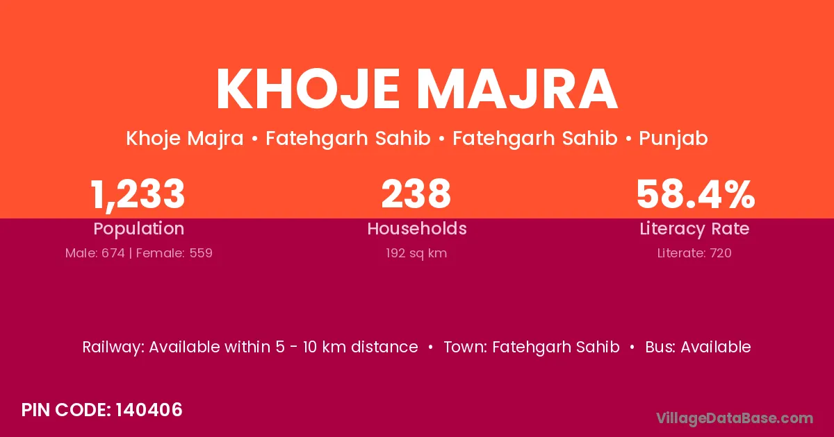 Fatehgarh Sahib is the nearest town to Khoje Majra village for major economic activities