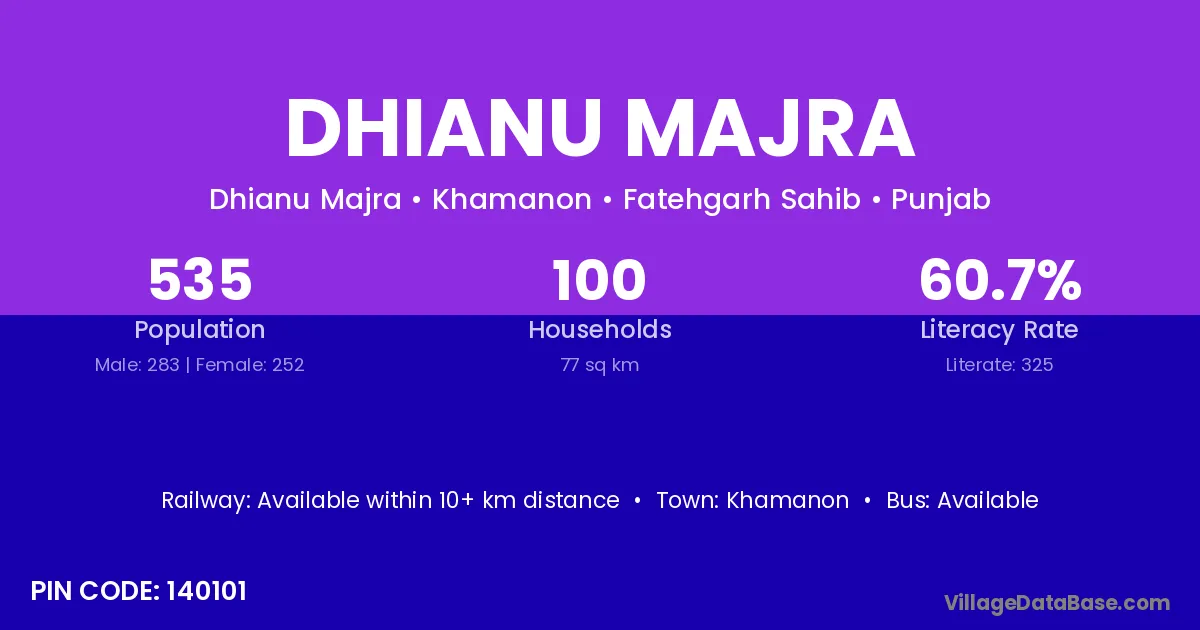 Khamanon is the nearest town to Dhianu Majra village for major economic activities
