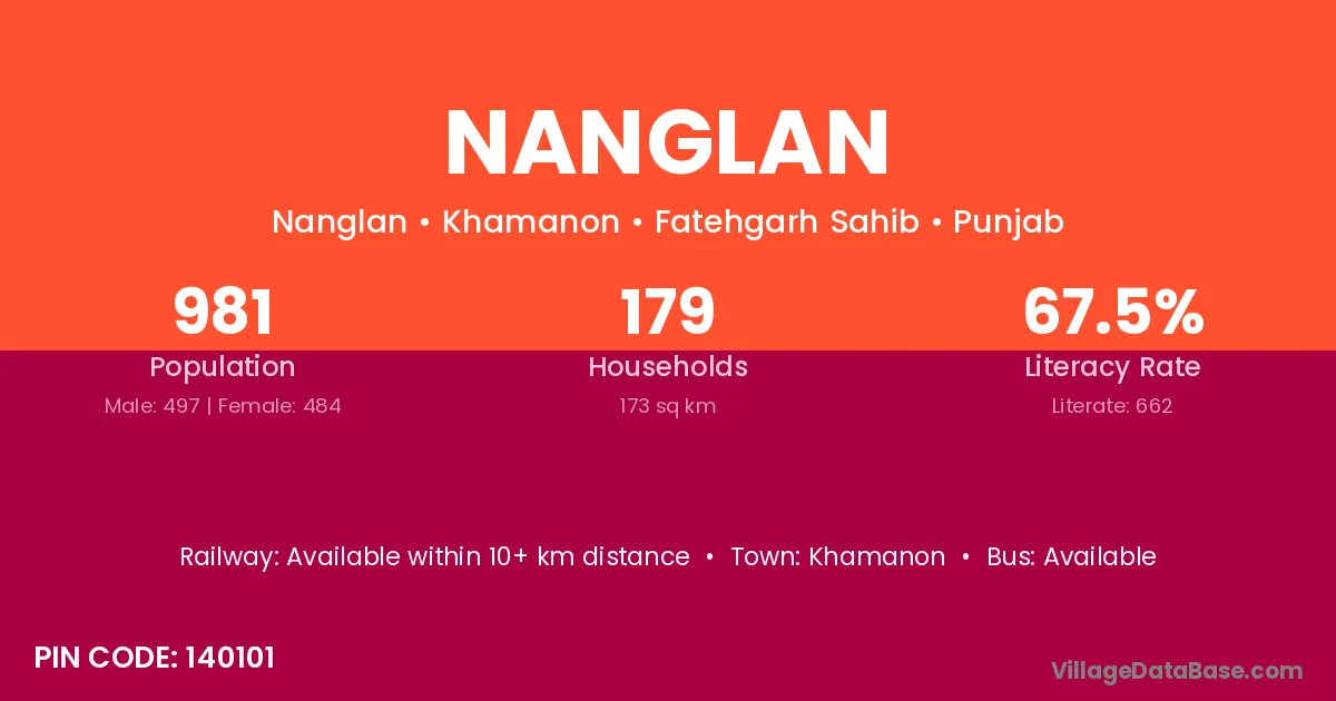Nanglan village has a total population of 981 people, of which 497 are males and 484 are females.