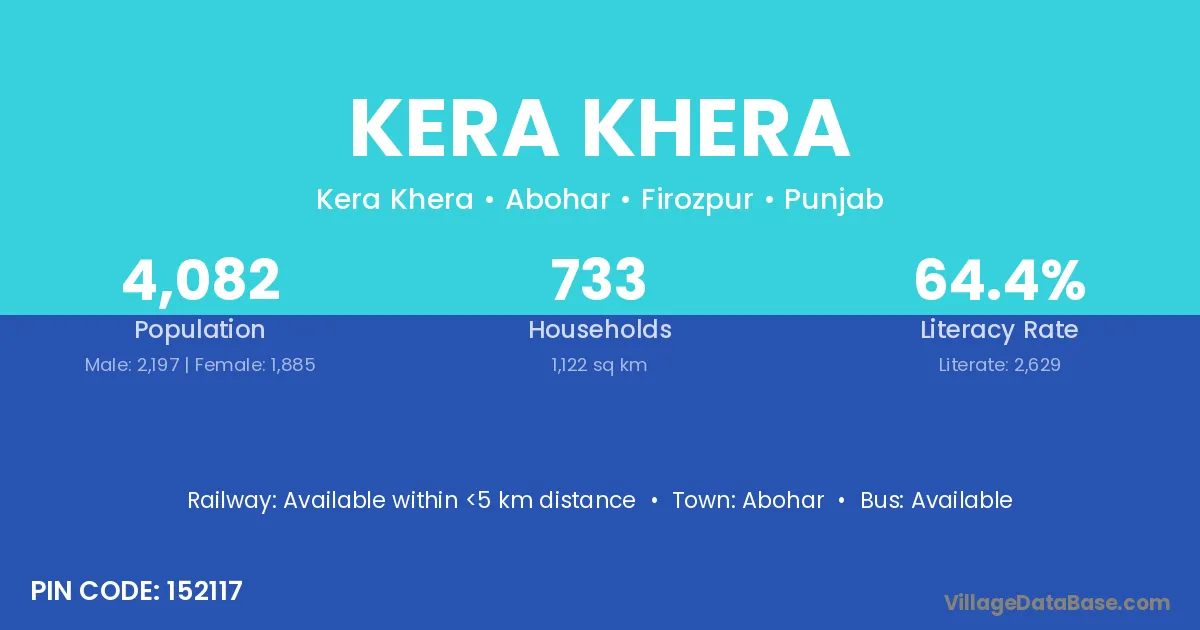 Abohar is the nearest town to Kera Khera village for major economic activities