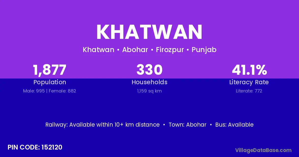 Khatwan village is located in the Abohar Tehsil of the Firozpur district in Punjab .
