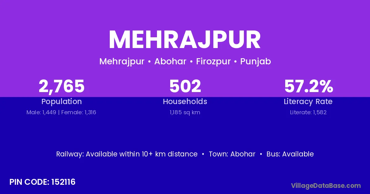 Abohar is the nearest town to Mehrajpur village for major economic activities