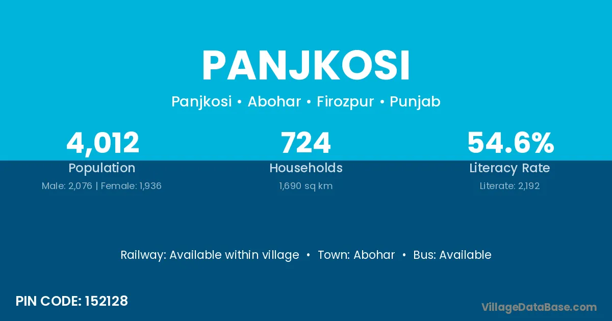 Abohar is the nearest town to Panjkosi village for major economic activities