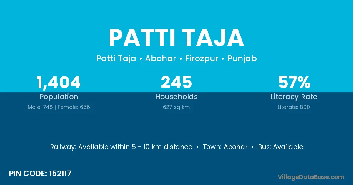 Abohar is the nearest town to Patti Taja village for major economic activities