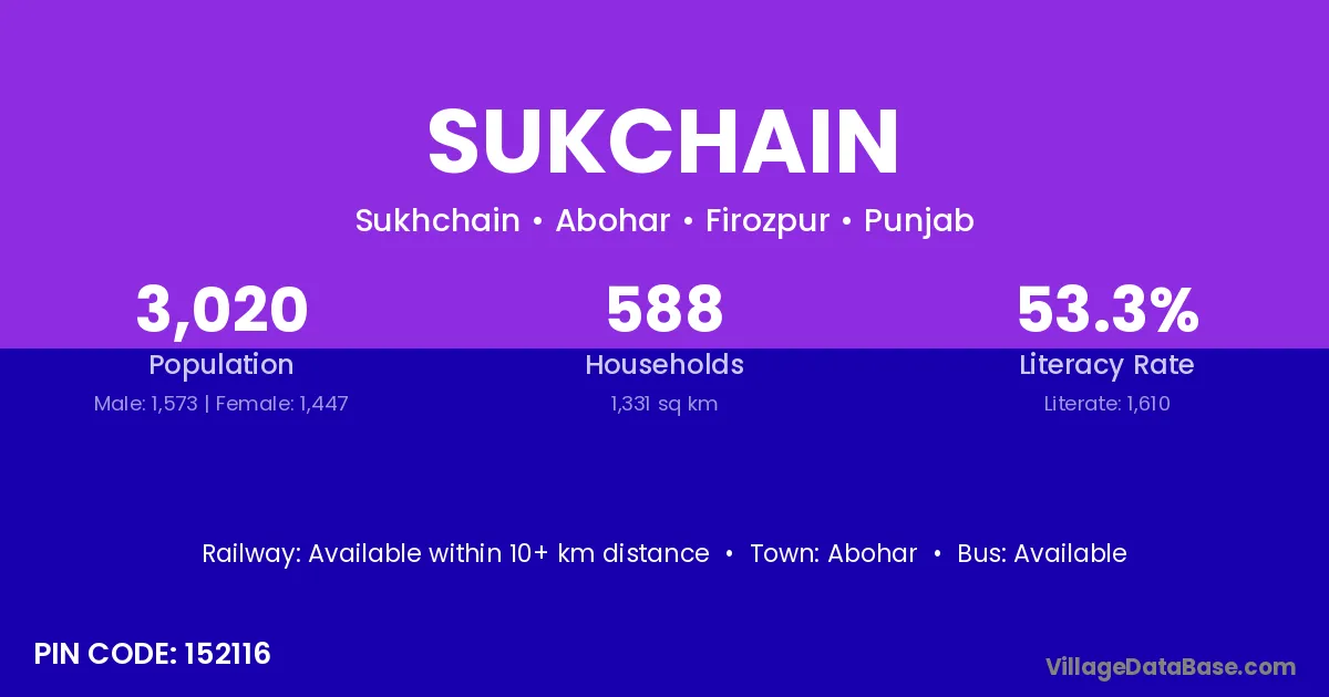 Abohar is the nearest town to Sukchain village for major economic activities