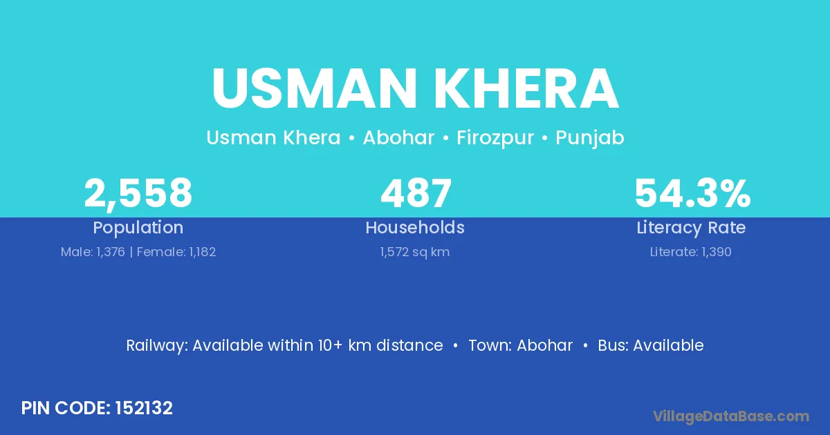 Abohar is the nearest town to Usman Khera village for major economic activities