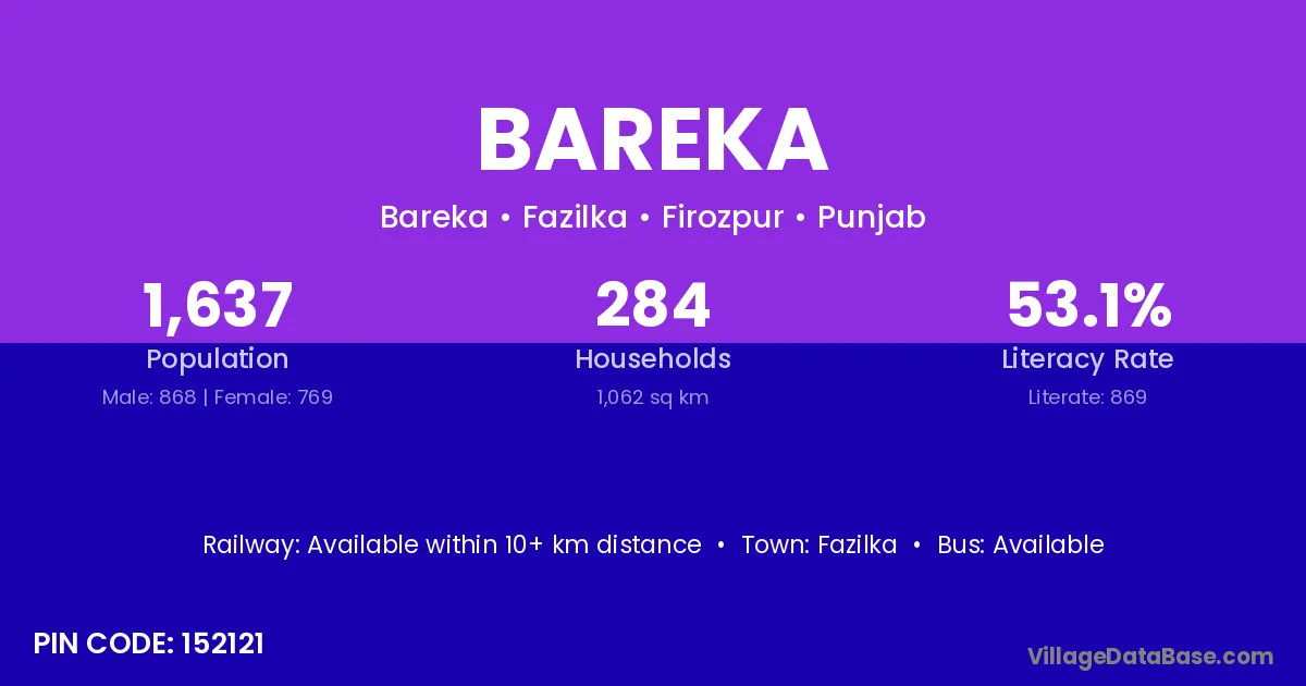 Fazilka is the nearest town to Bareka village for major economic activities
