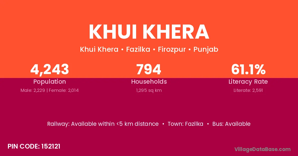 Fazilka is the nearest town to Khui Khera village for major economic activities