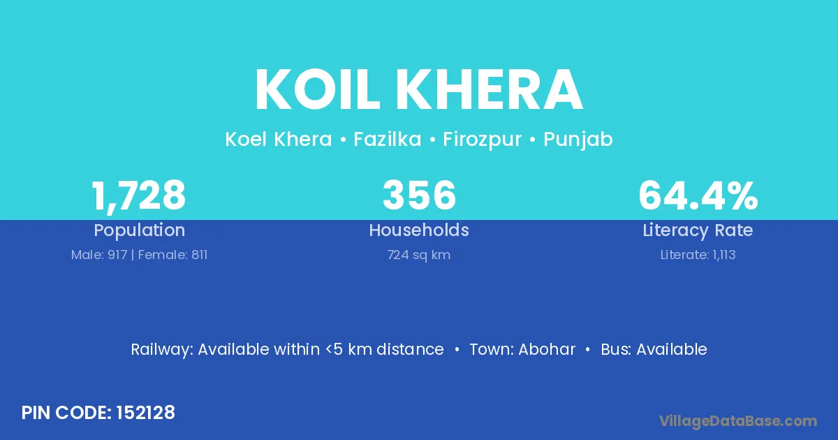 Abohar is the nearest town to Koil Khera village for major economic activities