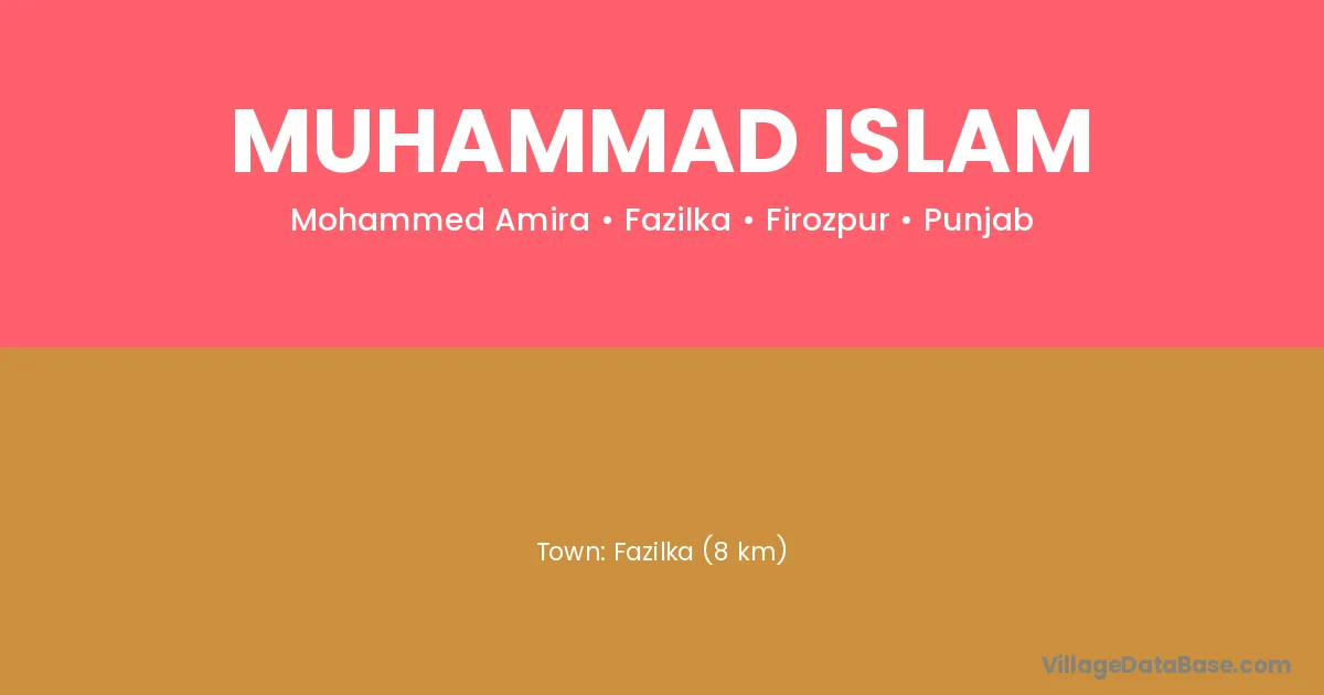 Muhammad Islam village is located in the Fazilka Tehsil of the Firozpur district in Punjab .