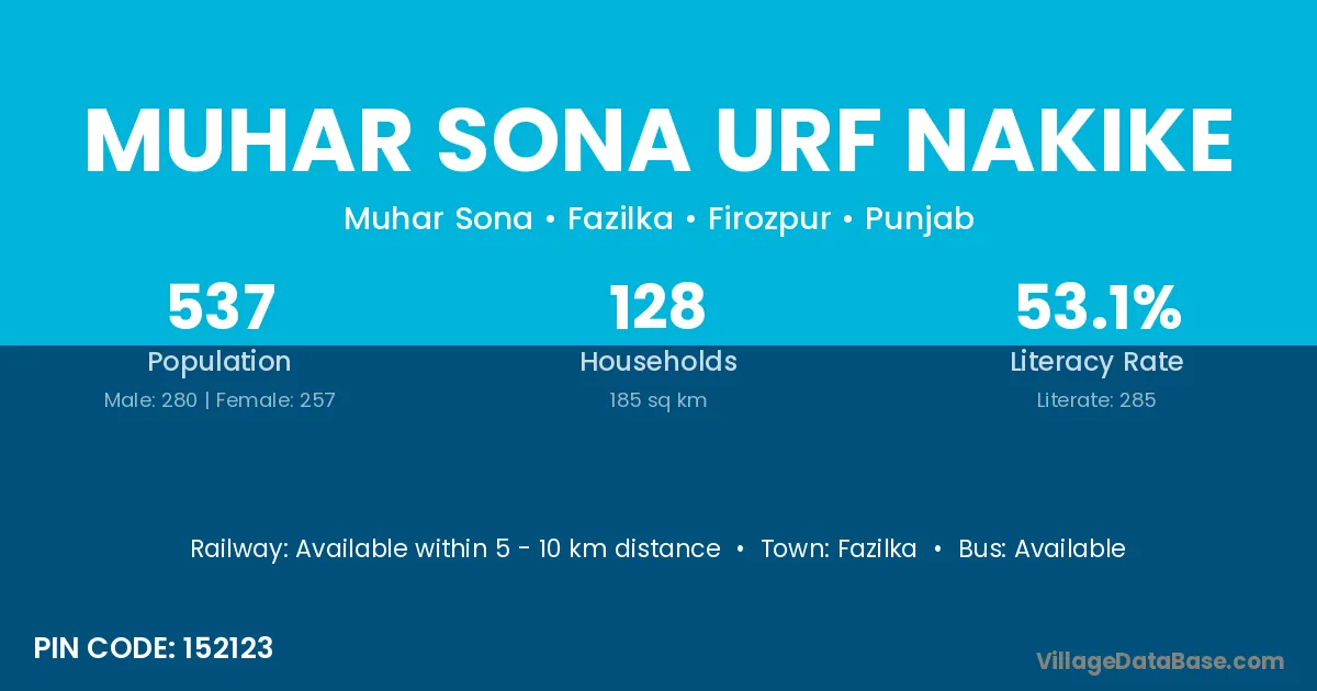 Muhar Sona Urf Nakike village has a total population of 537 people, of which 280 are males and 257 are females.