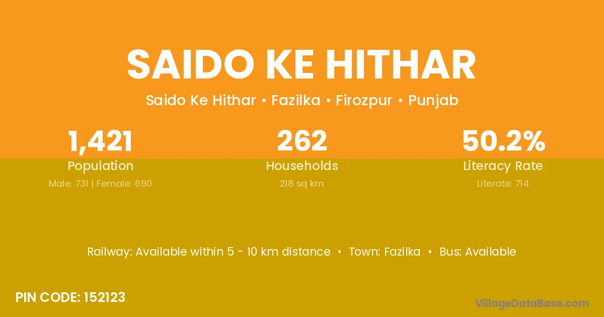 Fazilka is the nearest town to Saido Ke Hithar village for major economic activities