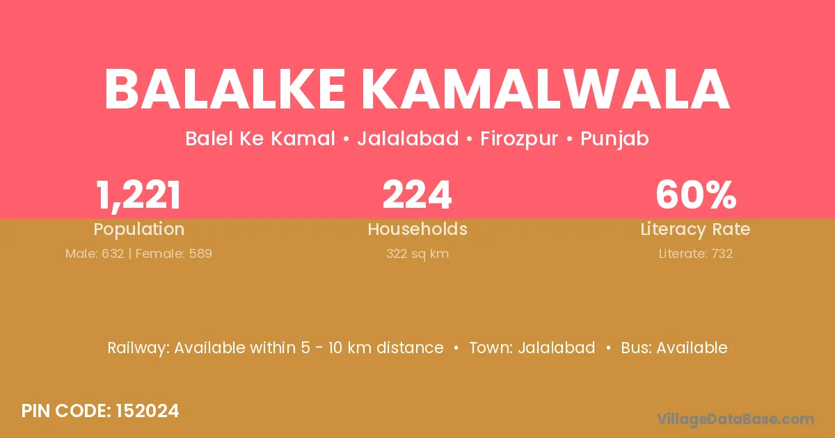 Balalke Kamalwala village has a total population of 1,221 people, of which 632 are males and 589 are females.