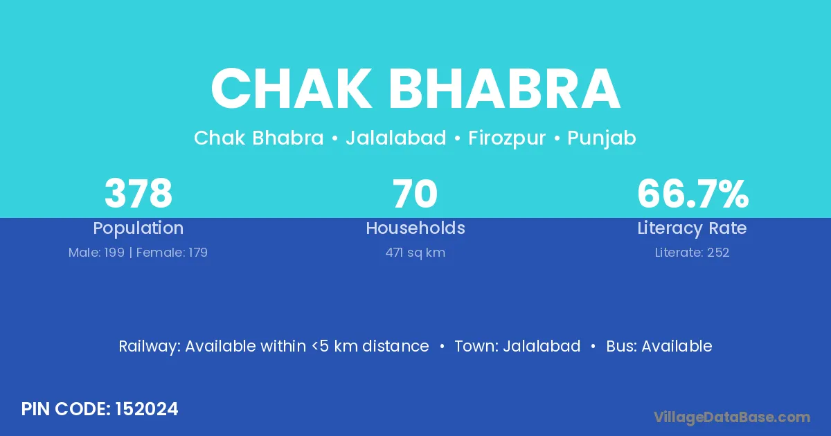 Chak Bhabra village has a total population of 378 people, of which 199 are males and 179 are females.