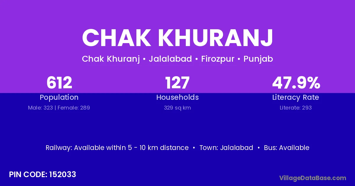 Chak Khuranj village has a total population of 612 people, of which 323 are males and 289 are females.