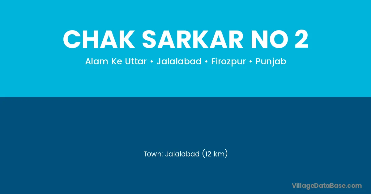 Chak Sarkar No 2 village is located in the Jalalabad Tehsil of the Firozpur district in Punjab .