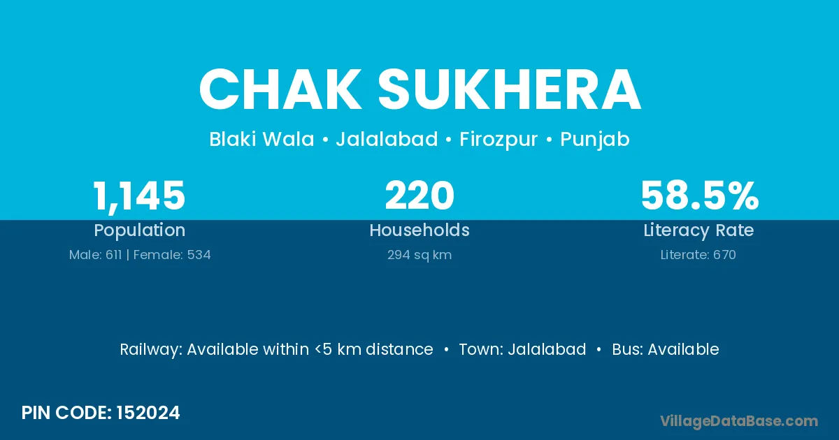 Chak Sukhera village has a total population of 1,145 people, of which 611 are males and 534 are females.