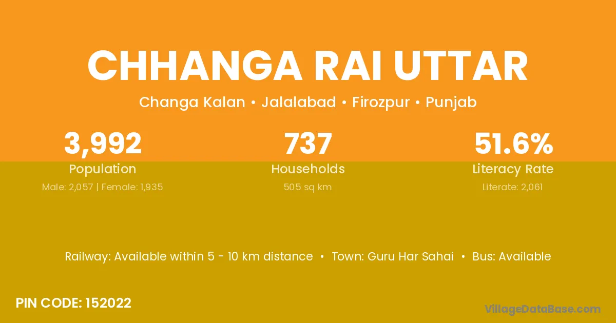 There are approximately 737 households in Chhanga Rai Uttar village.